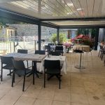 Espace guinguette : barbecue, bar extérieur, piste de danse, animations avec sono